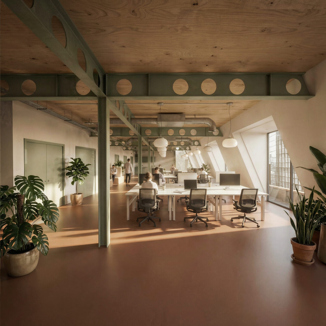 TPM Studio led a RIBA Stage 1 feasibility exploring six extension scenarios, ranging from a single additional storey to two-storey additions incorporating roof-level terraces. Central to the strategy was the removal of the existing mansard and rooftop plant to create a clear platform for a lightweight, set-back addition. New upper levels were conceived as calm, contemporary insertions, using high-performance glazing and restrained detailing to admit generous daylight while preserving the primacy of the historic façade. The introduction of outdoor amenity at roof level reshapes the building’s relationship to the skyline, offering planted terraces and shared spaces within an otherwise hard urban context. Internally, reconfigured cores and exposed services support flexible, light-filled floorplates suited to evolving patterns of work.